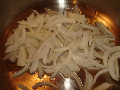 درون قابلمه کمی روغن بریزید پیاز را خلال کنید و آرام بزارید تا سرخ بشه